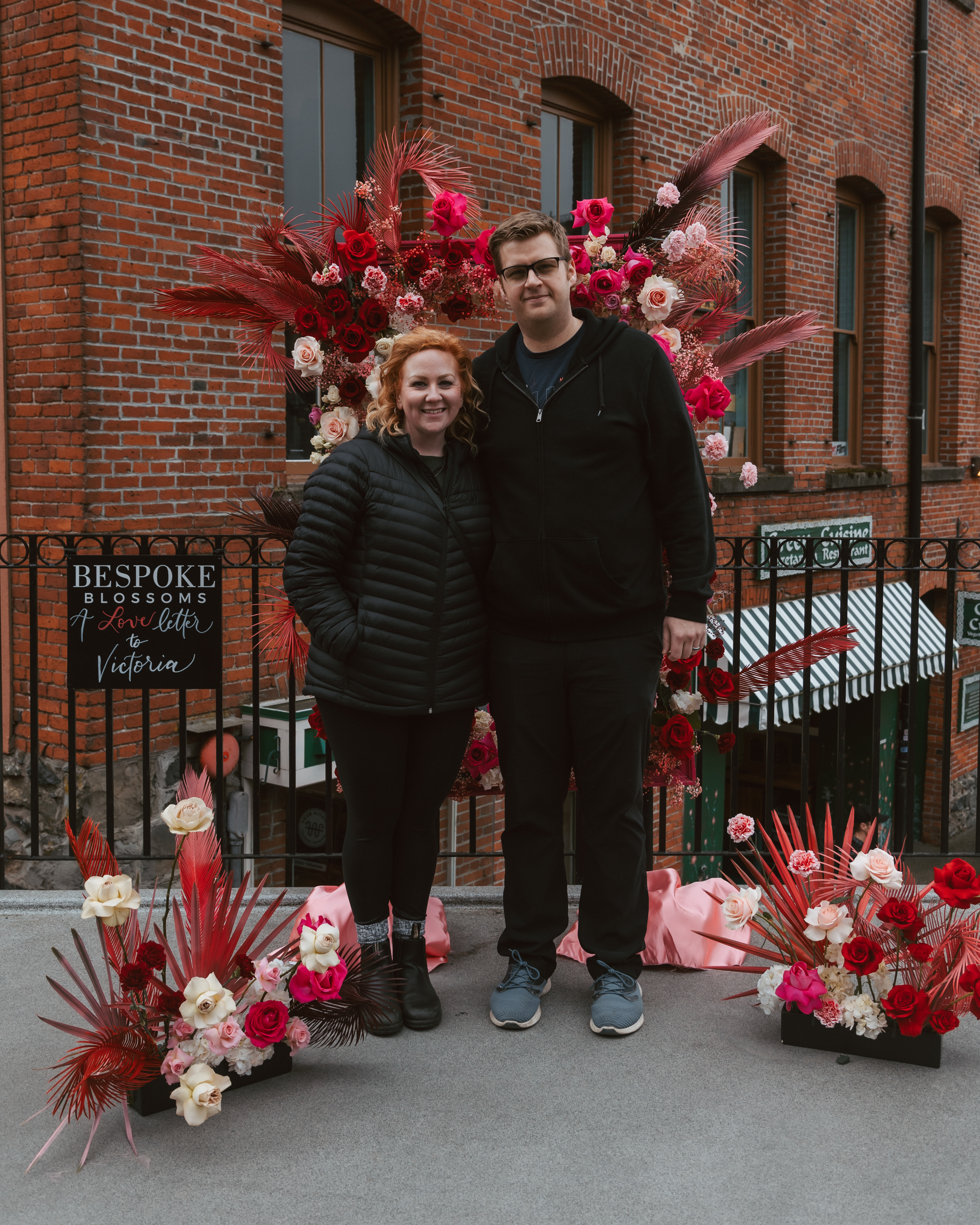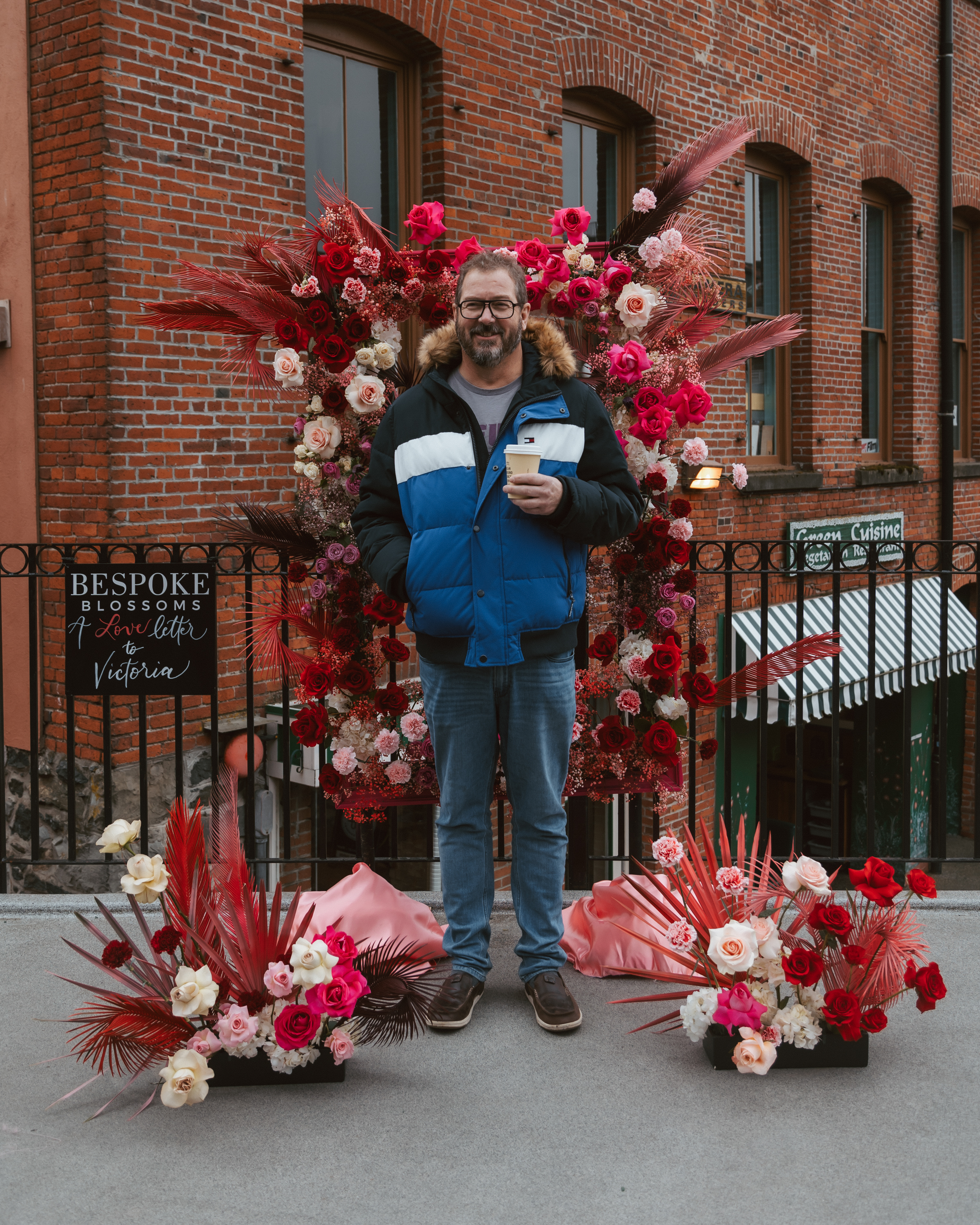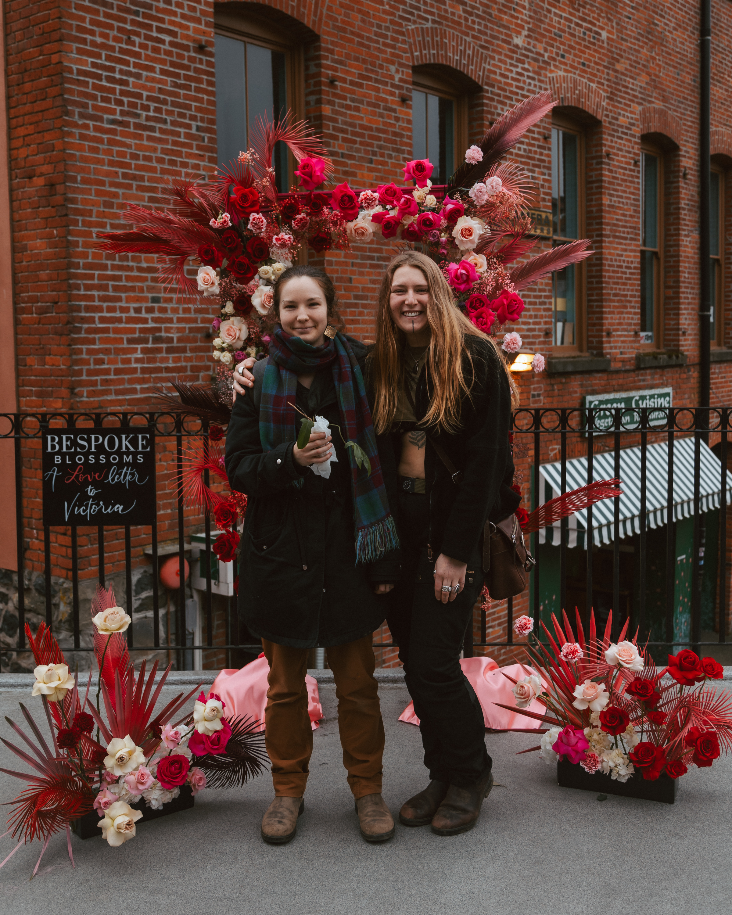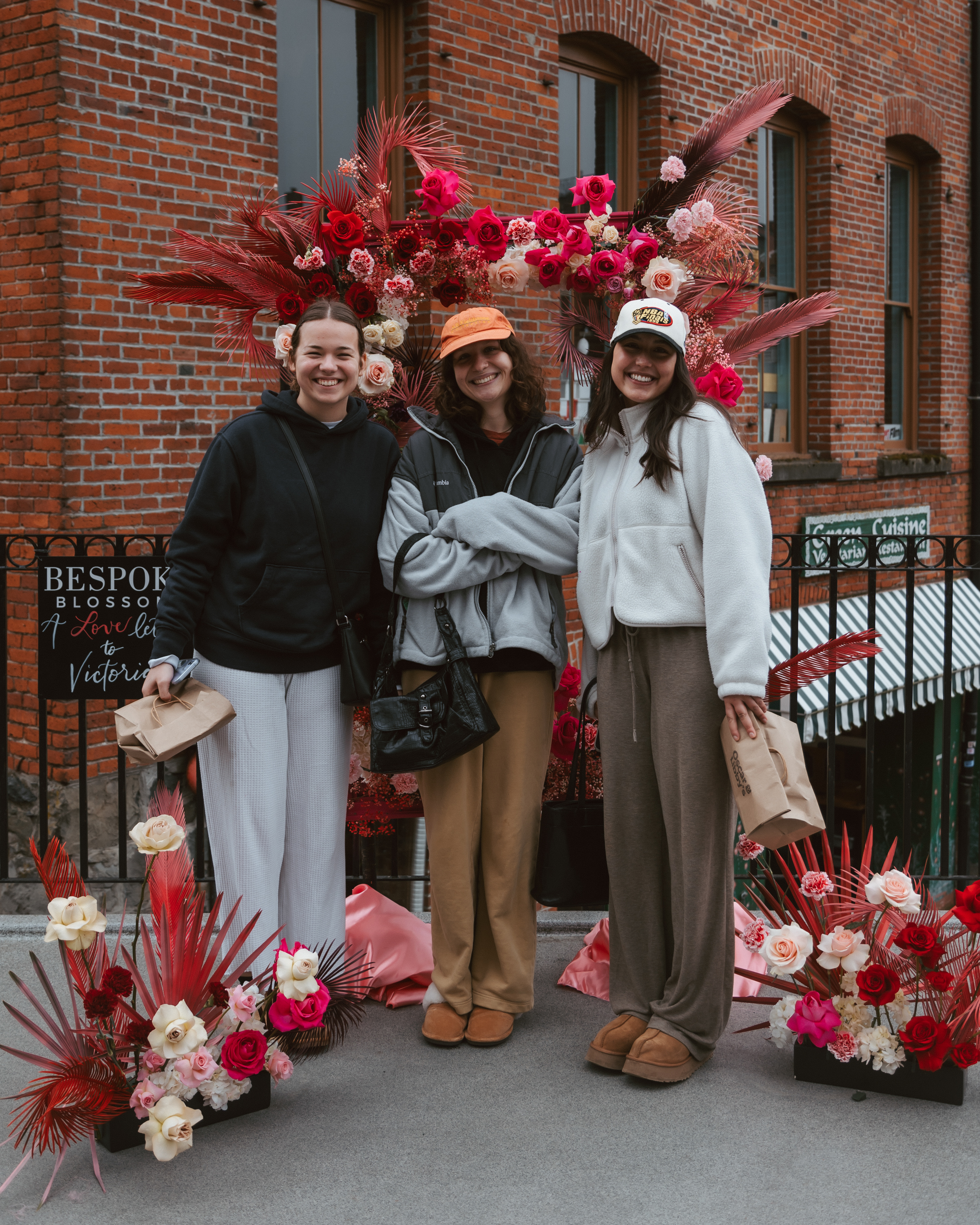 Every now and again, we get a little too excited and it spills out of our shop and into the street in a fun Flower Flash where we create a random temporary flower sculpture somewhere in the city. This lets us explore new techniques, engage people where they're at, and give a little thank you to the people of Victoria for being such a wonderful community.