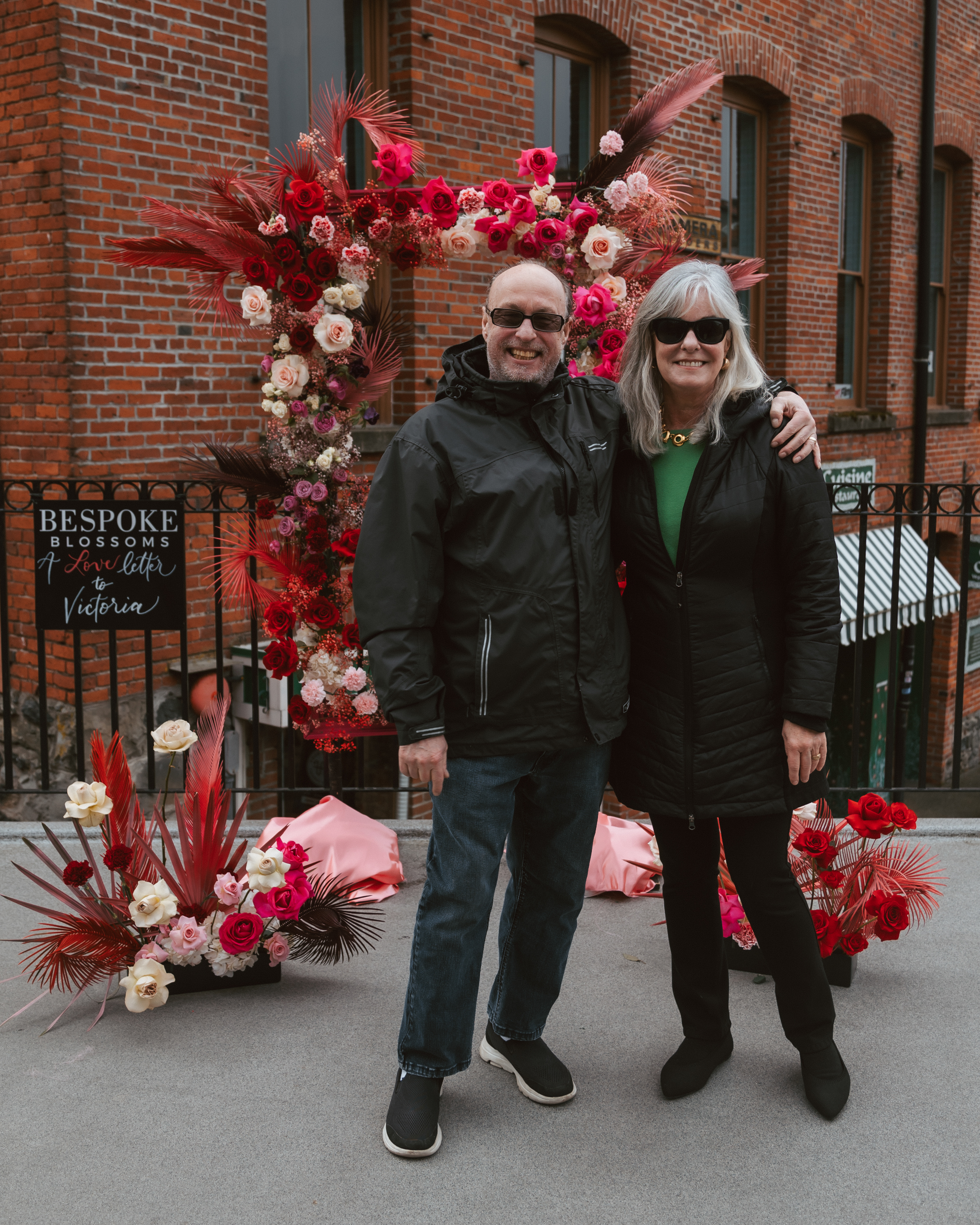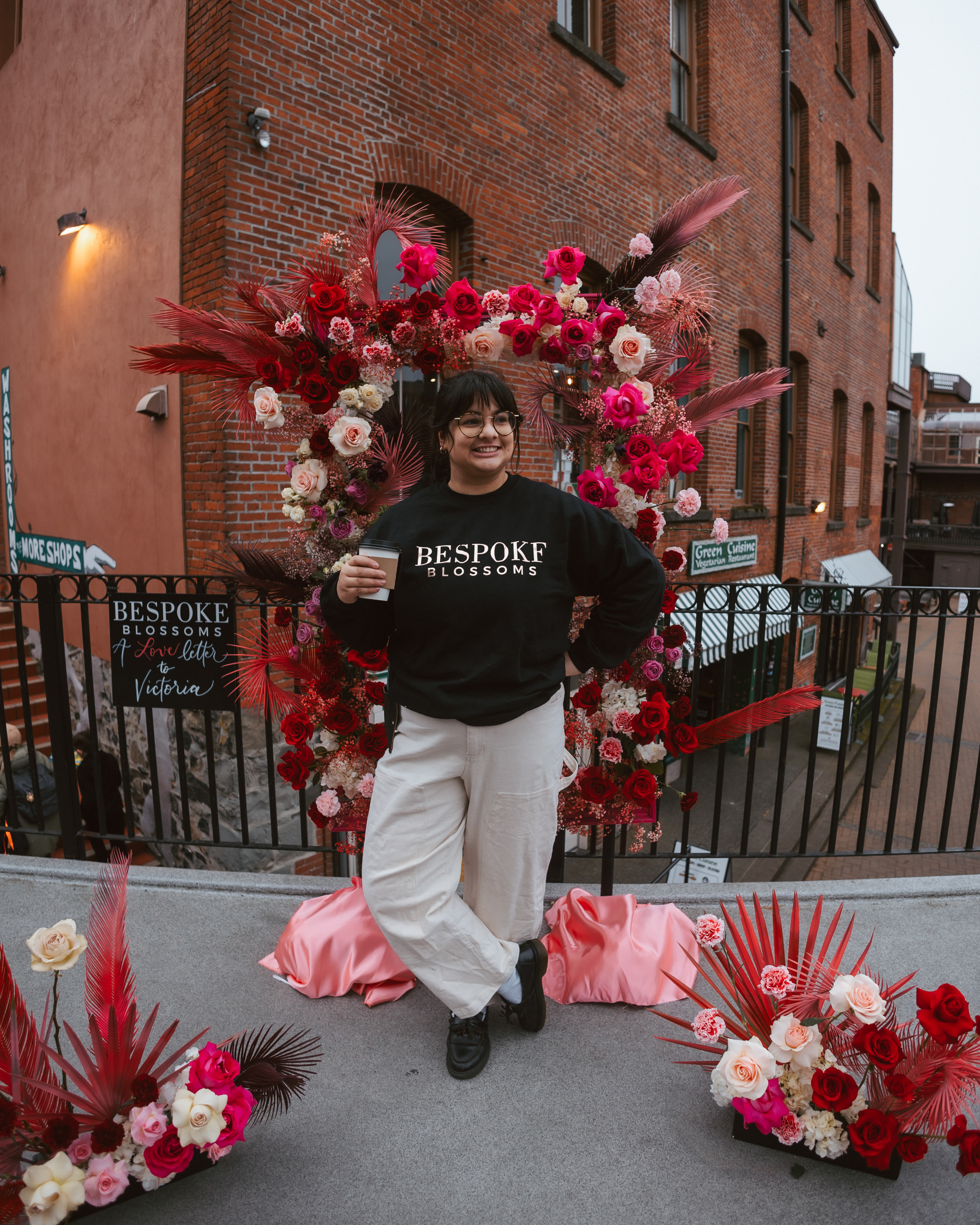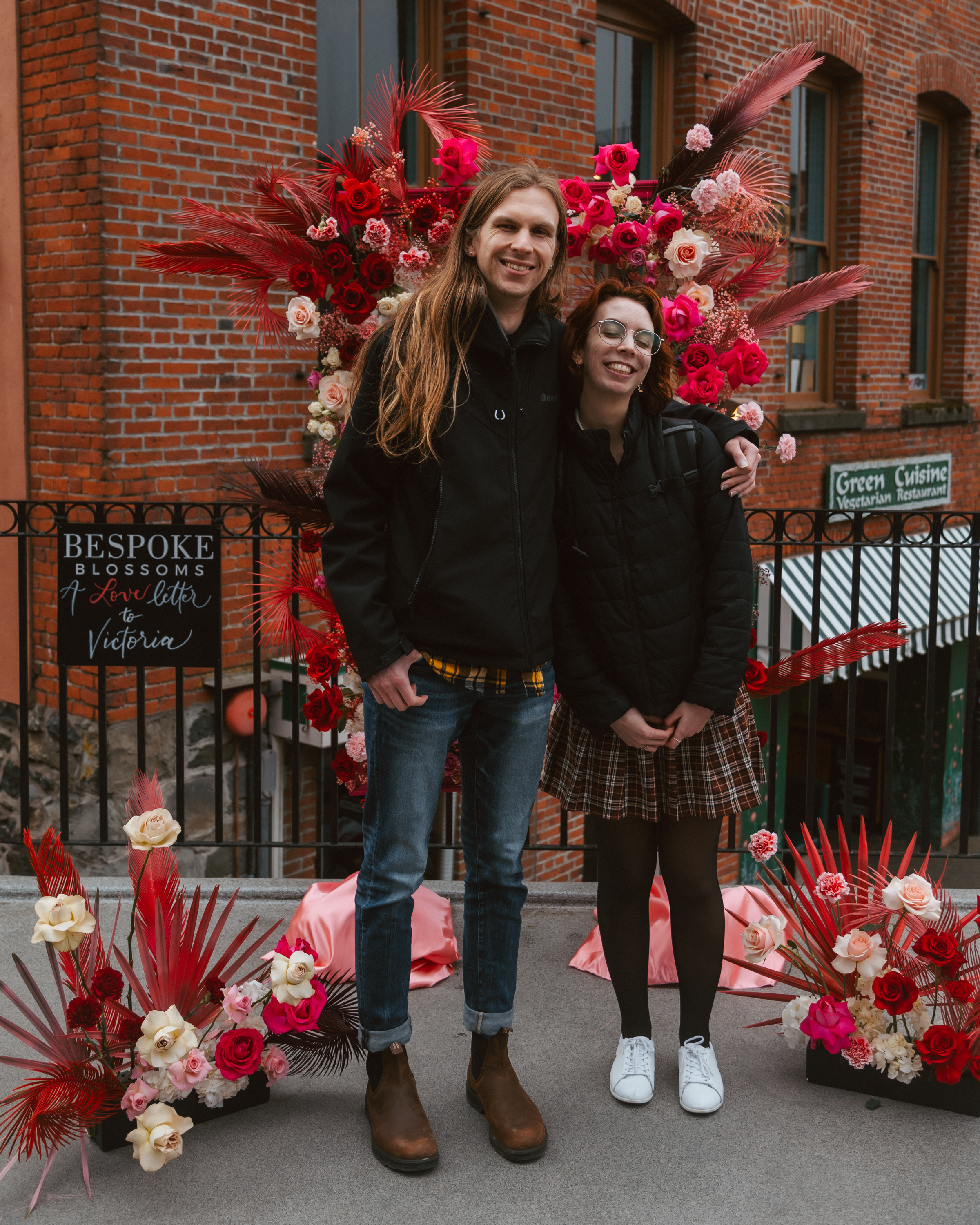 Every now and again, we get a little too excited and it spills out of our shop and into the street in a fun Flower Flash where we create a random temporary flower sculpture somewhere in the city. This lets us explore new techniques, engage people where they're at, and give a little thank you to the people of Victoria for being such a wonderful community.