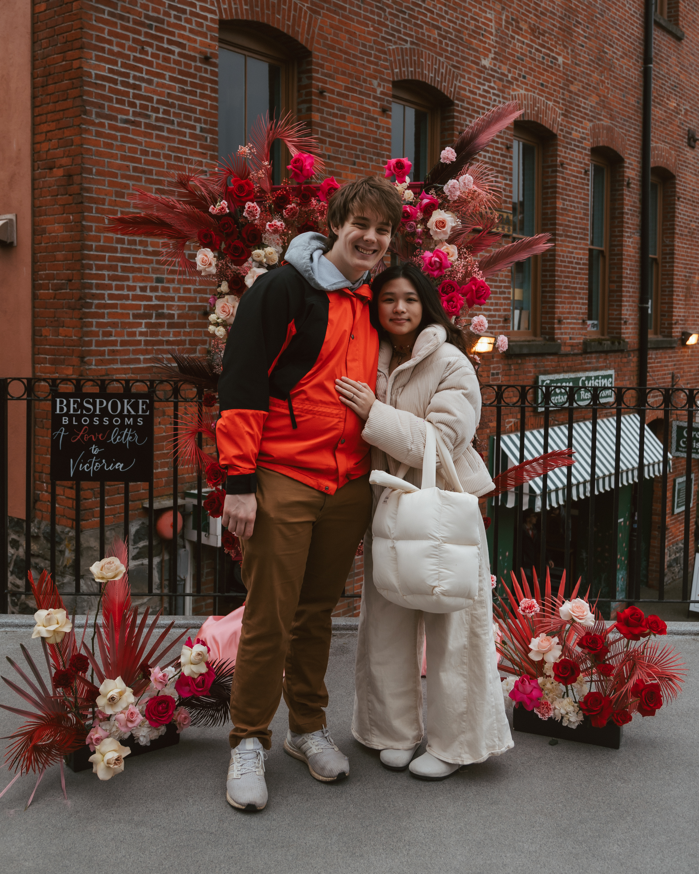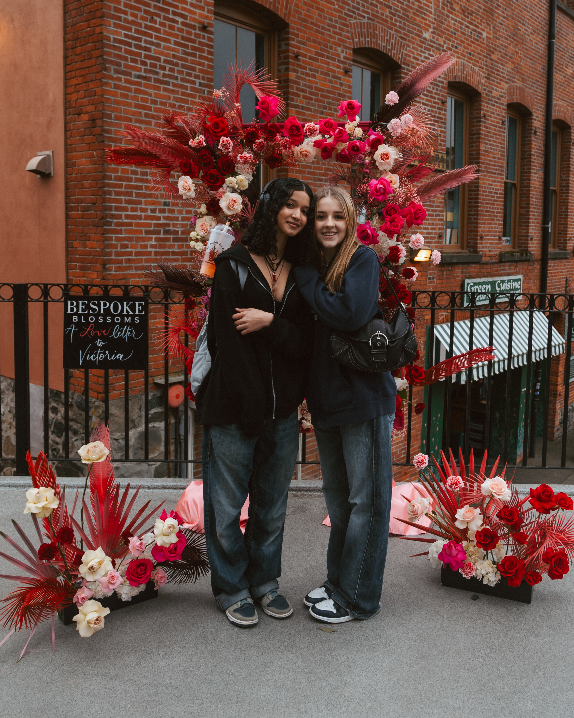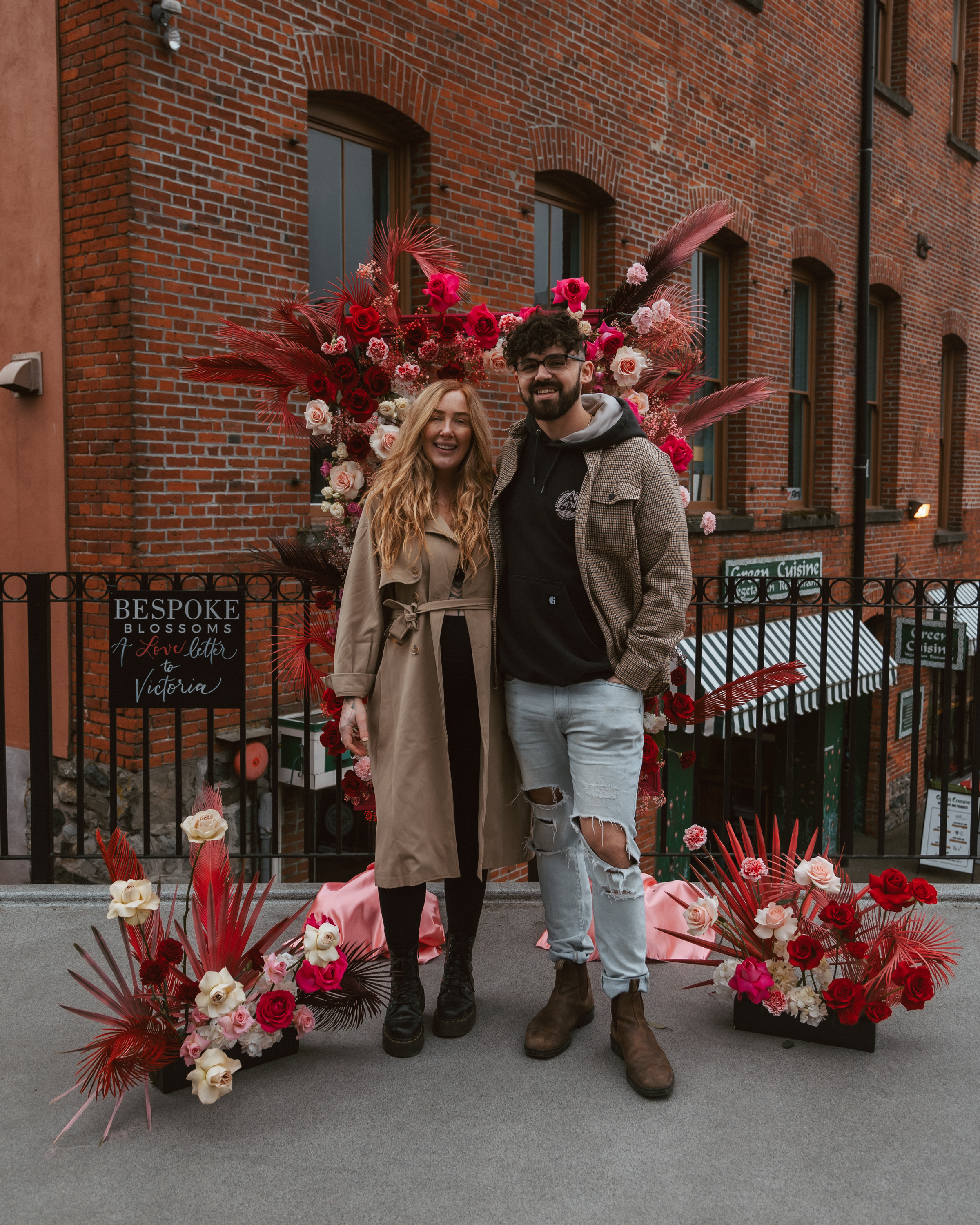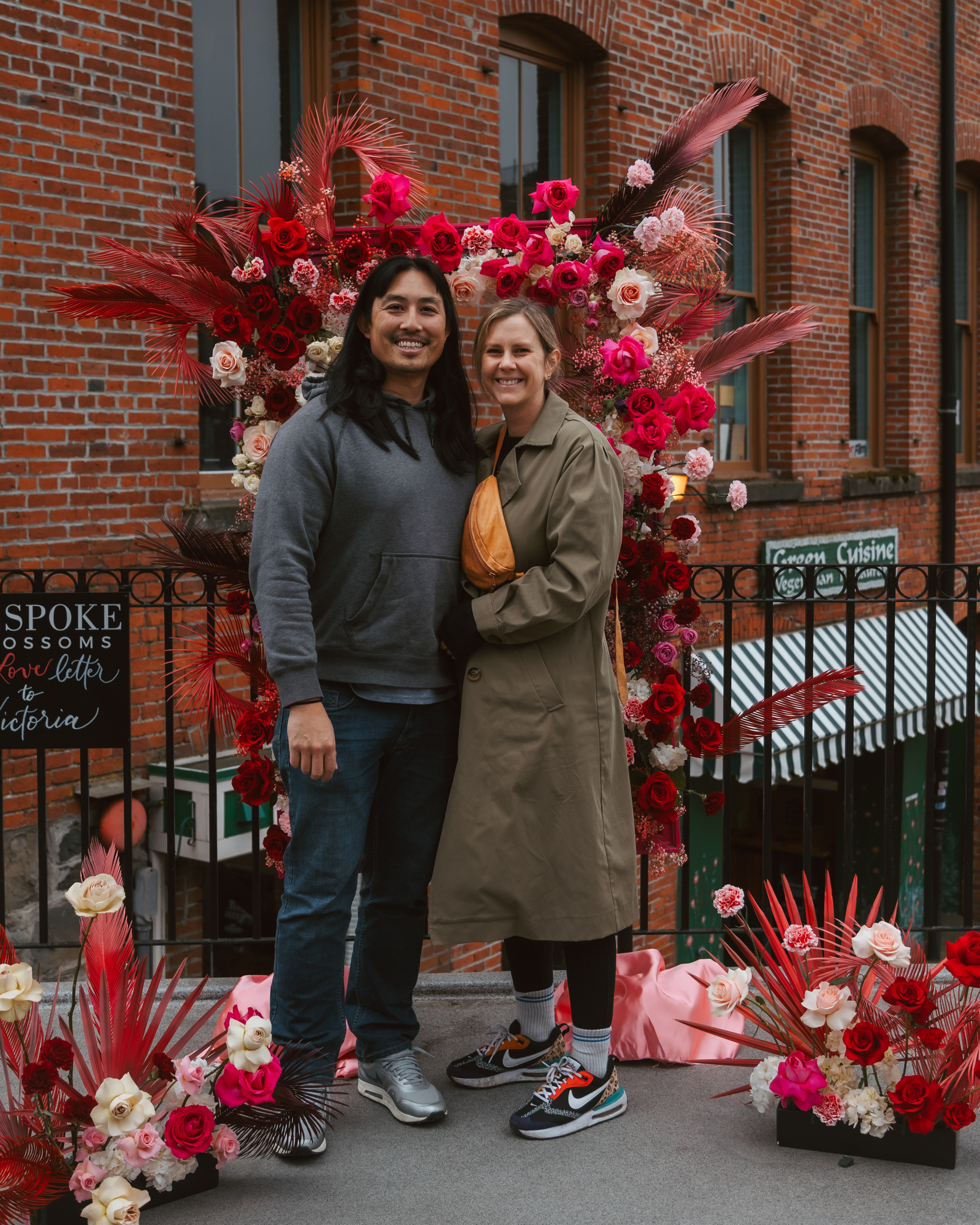 Every now and again, we get a little too excited and it spills out of our shop and into the street in a fun Flower Flash where we create a random temporary flower sculpture somewhere in the city. This lets us explore new techniques, engage people where they're at, and give a little thank you to the people of Victoria for being such a wonderful community.